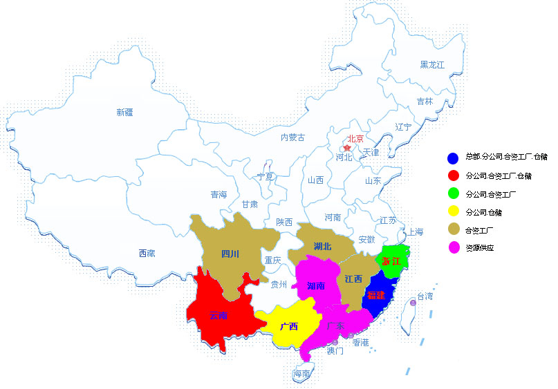 中坤化學(xué)總部設(shè)于福建,資源戰(zhàn)略著眼于中國及全球其它可再生資源點(diǎn)開發(fā)。目前資源戰(zhàn)略布局主要包括:福建、云南、廣東、廣西、江西、浙江、湖南、湖北、四川、土耳其、巴西。